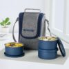 Borosil Carrymore Microwavable Stainless Steel Lunch Box with Bag | 3×300 ml Round Containers
