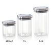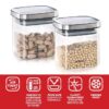The clear, square-shaped glass body not only maximizes storage space by fitting neatly into cupboards and shelves but also allows you to instantly see contents at a glance.