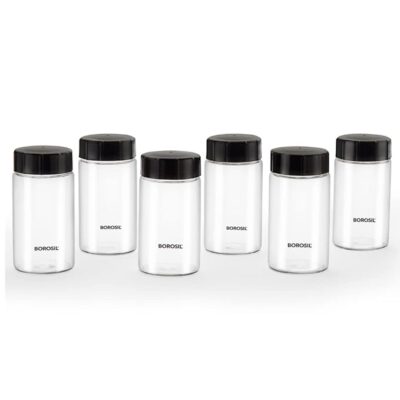 Be the first to review “Borosil Neo Spice Jar Set (250ml x 6) with PP Lid | Borosilicate Glass Storage Organizer | Microwave & Dishwasher Safe Kitchen Containers for Spices, Snacks, Grains, Dals | Transparent”