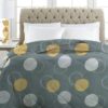 The outer shell uses quality “Glace Cotton” or similar smooth fabric while the fill is high-grade microfiber, giving a soft hand-feel and durability.