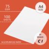 This C I A4 white copier paper features 75GSM sheets ideal for printing, copying, scanning, and school or office use. Each pack contains 100 sheets, perfect for projects, assignments, and practical work.