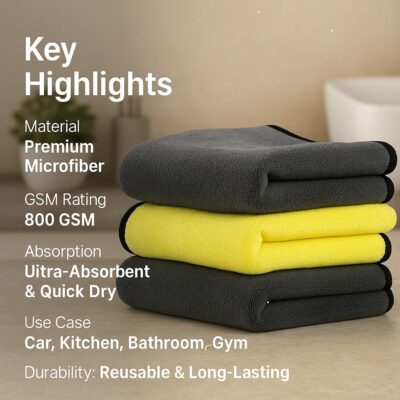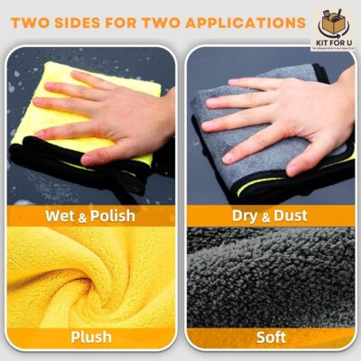 The 800 GSM Microfiber Car Cleaning Towel Pack of 2 is a premium auto care accessory designed for high-performance cleaning, polishing, and detailing of cars. Each towel features an ultra-thick, dual-sided plush design, providing maximum absorbency and soft yet durable cleaning for delicate car surfaces. The scratch-free microfiber material ensures safe use on paint, glass, and chrome, lifting dirt, dust, and water without leaving streaks or marks. With its high GSM construction, the towel offers superior water retention and efficient drying, reducing cleaning time and effort. Perfect for car enthusiasts, detailing professionals, and everyday use, it delivers professional-quality results at home or in workshops. Lightweight yet sturdy, the towels maintain their plush texture and absorbency even after repeated washes, ensuring long-term durability. Their versatile size and dual-sided feature allow for multi-purpose cleaning, polishing, and drying. Ideal for cars, bikes, and other vehicles, these towels are an essential part of any auto care kit. Combining convenience, effectiveness, and premium quality, the 800 GSM Microfiber Car Cleaning Towels elevate the cleaning experience while protecting your vehicle’s finish.