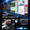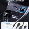 This 2-in-1 wireless adapter enables CarPlay and Android Auto connectivity, supporting Bluetooth 5.3 and 5.8GHz WiFi. It provides seamless integration for smartphones with in-car infotainment systems.