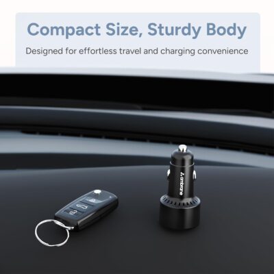 The Car Charger 85W (Model C85R) is a powerful and versatile in-car charging solution designed for both mobile devices and laptops. Featuring dual-port fast charging, it offers a 65W Type-C Power Delivery (PD) port ideal for charging MacBooks and other Type-C laptops, along with a 20W USB-A port for fast-charging iPhones, Android devices, iPads, and other USB-enabled gadgets. Its high output ensures efficient charging even for power-hungry devices. A soft glowing light adds a stylish touch while making it easy to locate the charger in low-light conditions. Compact, durable, and finished in sleek black, this charger is perfect for professionals and travelers who need reliable performance on the go.