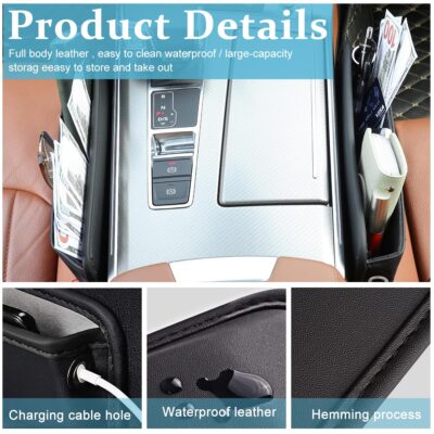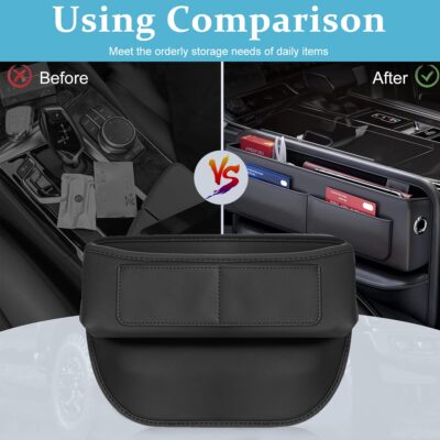 This car seat pocket organizer is crafted from durable PU leather, offering a stylish and functional storage solution for vehicle interiors. Designed to fit neatly in the side seam between front seats or the console, it creates extra space for phones, glasses, keys, cards, and other small essentials. Its black finish blends seamlessly with most car interiors, maintaining a clean and professional look. The organizer prevents items from falling into hard-to-reach gaps, keeping your car tidy and organized. Lightweight and easy to install, it requires no tools and stays securely in place during drives. Perfect for daily commutes, road trips, or family travel, it enhances convenience while maximizing available space. Its sleek design combines practicality with aesthetic appeal, making it a useful addition to any car. A versatile and durable accessory, it ensures your essential items are always within reach and your interior remains clutter-free.