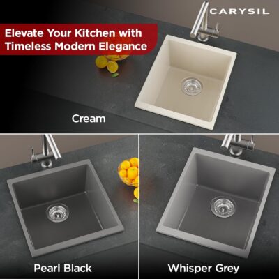 Be the first to review “Carysil Quartz Dolce UK Series Single Bowl Kitchen Sink, Real Stone Finish, 304 Stainless Steel Coupling, Kitchen Sink with Sloping Drain, Noise Reduction Design, 15x18x8 inches, Cream”