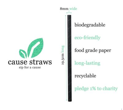 Cause Straws - Biodegradable Premium Drinking Straws | 100 Straws (8mm Wide) | Black Colour | Best for Juice, Soft Drinks and Cocktails | Sip for A Cause | (8MM, Black)