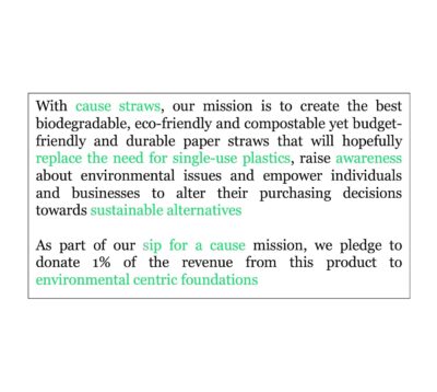 The elegant black color adds a premium look, making them perfect for parties, cafés, bars, events, and everyday use. Sturdy, comfortable to sip, and single-use, Cause Straws support a cleaner environment—sip for a cause while enjoying your favorite beverages.