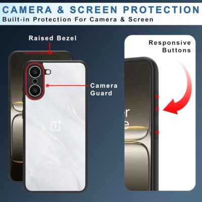 Shockproof hybrid case with TPU + acrylic design, raised edges for camera and screen protection, and perfect fit for OnePlus Nord CE 5 5G.