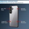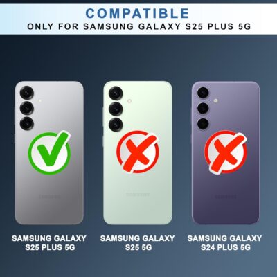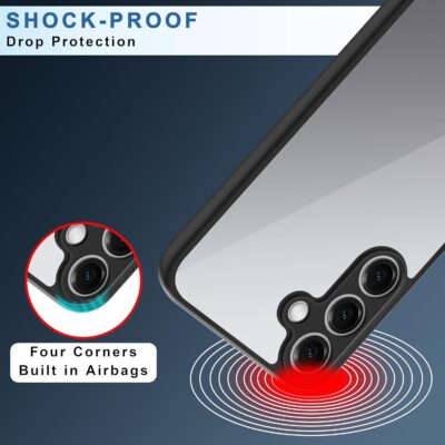 Shockproof hybrid case with TPU + acrylic build, raised camera bump, and clear back design for Samsung Galaxy S25 Plus 5G.