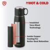 CELLO Duro Cup Style Thermosteel Flask, 750ml, Military Green | 24 Hours Hot & Cold Bottle | Dual Purpose Cup & Cap| Flask for tea coffee | Ideal For Office, Gym, Home, Kitchen,Trekking, Travel Bottle
