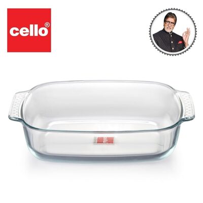 CELLO Giacinta Borosilicate Glass Baking Dish |Over ware Glass Baking Set| Microwave Oven Safe Baking Dish| 2L, Transparent