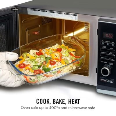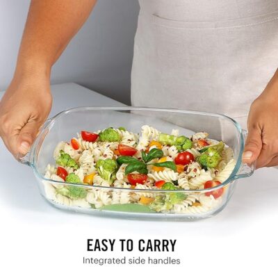 The CELLO Giacinta Borosilicate Glass Baking Dish is a transparent, high-quality borosilicate glass tray designed to make your kitchen cooking, baking, reheating, and serving tasks effortless and enjoyable. With a generous 2-liter capacity, this dish is perfect for preparing casseroles, roasted vegetables, baked pastas, desserts, and more — ideal for both everyday meals and special occasions. Its borosilicate glass construction offers excellent thermal shock resistance, allowing safe use in the microwave, oven, freezer, and dishwasher without cracking or discoloring, so you can go from oven to table or fridge to heat with confidence. The clear design lets you monitor cooking progress at a glance, while the smooth, non-porous surface resists stains and odors for easy cleaning and hygienic food preparation. Whether you’re baking family favorites, reheating leftovers, or presenting dishes directly at the table, this glass baking dish delivers durability, convenience, and elegant serving all in one.