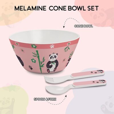 CELLO Kidzbee Cone Bowl Bamboo Buddies Melamine Bowl Set for Kids | BPA Free and Food-Grade Material | Attractive and Kidfriendly Designs | Break Resistant & Durable Set | Set of 3, Peach
