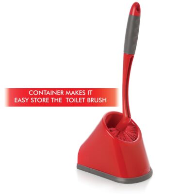 Made from sturdy plastic with a contemporary red and grey design, this brush set combines performance, convenience, and style for everyday bathroom cleaning.