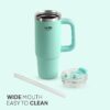 CELLO Quench 600 Stainless Steel Insulated Tumbler with Handle and Straw, 550ml, Mint |Hot & Cold Sipper Bottle with Handle | Cup Holder Compatible for Car | Coffee Mug for Office & Travel