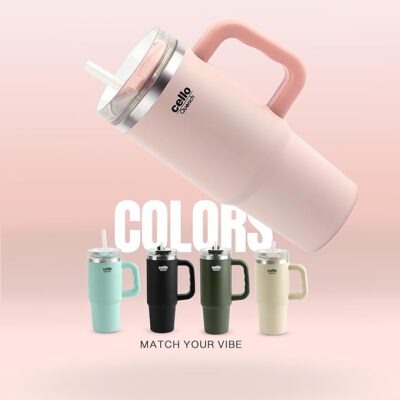 Be the first to review “CELLO Quench Pro 900 Double Wall Insulated Tumbler with Handle and Straw 880 ml, Pink | ISI Certified Vacuum Insulated Cup Holder Friendly Hot and Cold Stainless Steel Mug | for Office, Car & Travel”