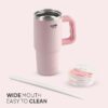 The sturdy ergonomic handle offers a comfortable grip, while the reusable straw lid ensures easy and spill-resistant sipping.