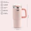 CELLO Quench Pro 900 Double Wall Insulated Tumbler with Handle and Straw 880 ml, Pink | ISI Certified Vacuum Insulated Cup Holder Friendly Hot and Cold Stainless Steel Mug | for Office, Car & Travel