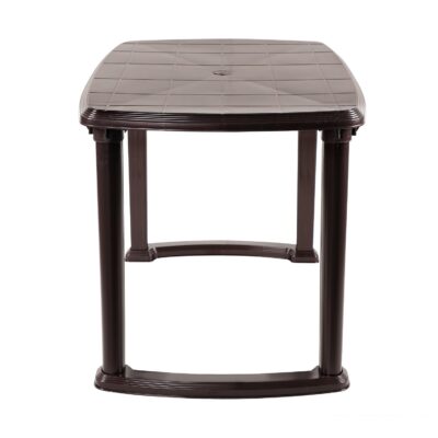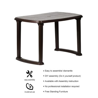 The Cello Senator Plastic Dining Table combines elegance and durability, making it a stylish addition to modern homes. Crafted from high-quality, weather-resistant plastic, this table offers a sturdy and long-lasting structure suitable for both indoor and outdoor use. Its matte brown finish gives a sophisticated wooden look while being easy to clean and maintain. Designed for family dining, it comfortably seats four to six people and features a broad, stable tabletop that resists scratches, stains, and fading. The lightweight build allows easy repositioning, while the strong legs ensure stability even during heavy use. Ideal for dining rooms, balconies, gardens, or cafes, this table blends practicality with timeless design for versatile everyday use.
