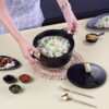 Doubles as an elegant serving bowl with a matching lid that enhances presentation while locking in flavor and aroma.