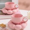 Ceramic Sunflower Bloom Cup and Saucer Set Microwave Safe Coffee Mug for Home and Kitchen Dining - 350ml Capacity (Pink)