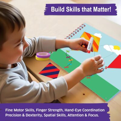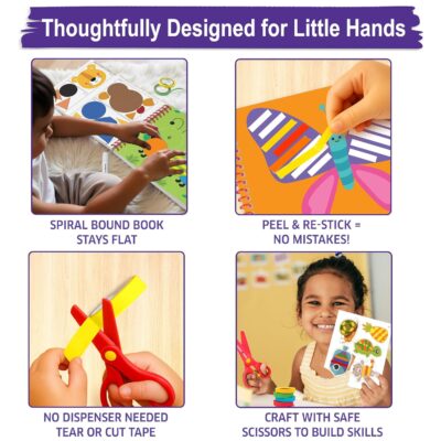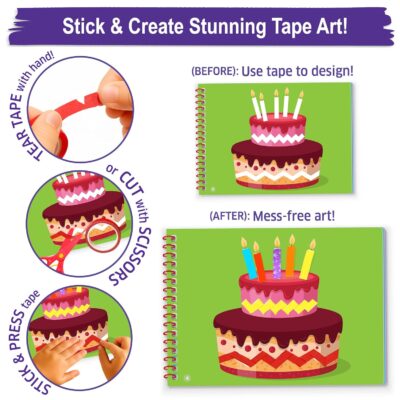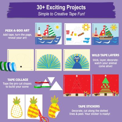 Packed with 30+ engaging craft projects, this kit helps children develop fine motor, creativity, and scissor skills through colorful tape trails and easy sticker activities.