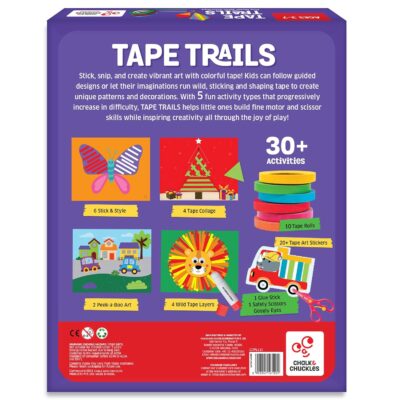 Unleash your child’s creativity with the Chalk & Chuckles Tape Trails Art and Craft Kit — a fun, mess-free tape and sticker art set designed for kids aged 3 to 7 years. Packed with 30+ engaging craft projects, this kit helps children develop fine motor, creativity, and scissor skills through colorful tape trails and easy sticker activities. Perfect for early learners, it offers hands-on fun while enhancing focus and coordination. Ideal as a birthday gift or a creative pastime, this educational art kit keeps kids entertained and inspired — with no glue, no mess, just pure imagination!