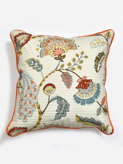 Clasiko Cotton Cushion Covers Set of 2; 16x16 Inches; Multicolor Peacock
