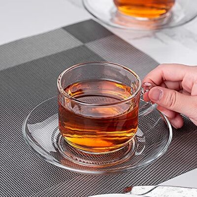 Clear Classic Glass Tea & Coffee Cup and Saucer Set, for Espresso Cappuccino hot Chocolate Green Tea and More, (Hazel Set, 4 Cup and 4 Saucer) 150 ml
