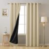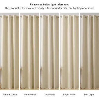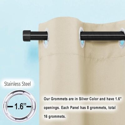 Upgrade your doorway décor with this premium set of blackout door curtains from Cloth Fusion, designed for both style and high performance. This set includes two panels, each measuring approximately 7 feet in length (≈ 213 cm) and ~4 feet in width per panel (≈ 122 cm), making it suitable for standard door openings or tall windows. According to product listings, the fabric is crafted from 100% high-density polyester and features a specialized blackout lining, enabling complete light block even in the lighter “Iridescent White” color version. The panels come with large grommet/eyelet tops (stainless steel, approx. 1.6″ inner diameter) for easy installation and smooth sliding on curtain rods. The dense fabric also offers thermal insulation (helping keep the room cooler in summers and warmer in winters) and noise-reduction benefits due to the blackout lining’s thickness. The “Iridescent White” finish provides a neutral yet elegant backdrop for your décor, helping reflect light when desired and still maintain privacy and darkness when drawn.