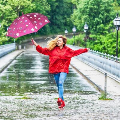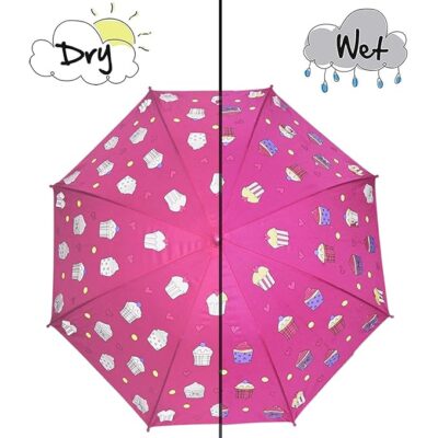 A fun colour-changing kids umbrella that transforms when wet! Lightweight, windproof, and easy to use with a safe pinch-proof design and round handle—perfect for boys and girls.