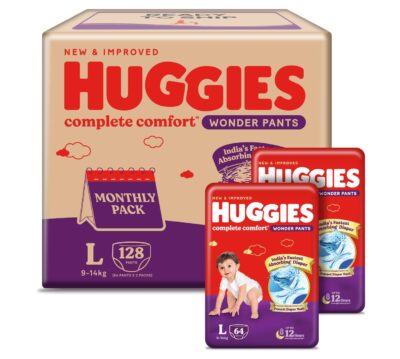 Complete Comfort Wonder Pants are thoughtfully designed pant-style baby diapers that combine softness, convenience, and superior absorption to keep your baby comfortable at all times. These large-sized diapers are ideal for babies weighing between 9 to 14 kilograms, ensuring a perfect fit without leakage issues. With India’s fastest absorbing technology, they quickly lock away wetness to maintain dryness and prevent discomfort. The gentle and breathable material protects your baby’s delicate skin from rashes and irritation, making them safe for daily use. The elastic waistband provides a snug yet flexible fit, allowing babies to move freely without restrictions. Easy-to-wear and remove, the pant-style design makes diaper changes quick and hassle-free for parents. The high absorbency ensures long-lasting dryness, making them suitable for overnight use and travel convenience. Each diaper is dermatologically tested and designed to offer maximum care for sensitive skin. The soft cushioned layers add an extra touch of comfort while preventing leaks and ensuring hygiene. With a pack of 128 diapers, it provides long-lasting supply and peace of mind for parents.