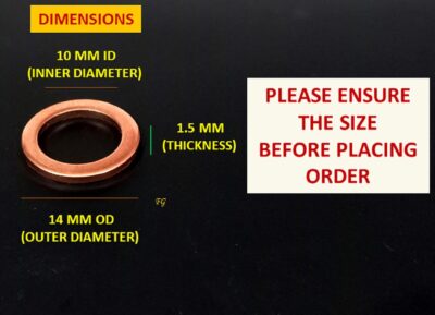 These Copper Flat Washers M10 (Pack of 100) are precision-engineered with dimensions of 14mm outer diameter, 10mm inner diameter, and 1.5mm thickness for accurate fitting in mechanical and industrial assemblies.