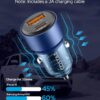 COSTAR 75W Car Charger Fast Charging with Dual Ports, Type-C QC 45W+ USB PD 30W, Compatible with Tablets, Mobile and Other Devices, Car Mobile Charger with 2m Type C to C Fast Charging Cable (Blue)