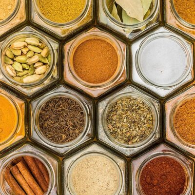 The COTIT Hexagon Glass Jar Set includes six 250ml jars with airtight black lids and gold accents. Ideal for storing masalas, spices, candies, or other kitchen essentials while keeping them fresh and organized.