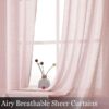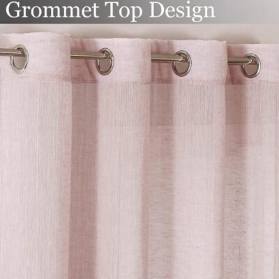 Cotton Linen Sheer Window Net Curtains for Bedroom Balcony Backdrop Decoration, 6 feet Long, Salmon Pink, Set of 2