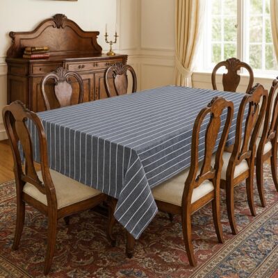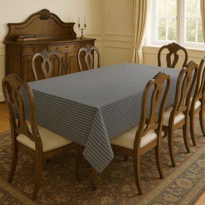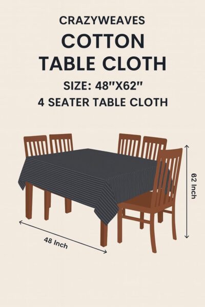 This cotton table cloth is designed for 4-seater dining tables and comes in a practical rectangular size of 48×62 inches, offering full coverage and a neat, stylish appearance. Made from high-quality cotton fabric, it features a modern grey striped pattern that suits all types of home décor, from minimal to contemporary. The material is durable, washable, and easy to maintain, making it ideal for daily use in dining areas, kitchens, study tables, or work-from-home setups. Its soft yet sturdy texture provides good protection for your table from dust, spills, and scratches, while also giving your space a clean and elegant look suitable for everyday meals as well as casual gatherings.