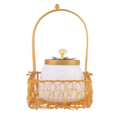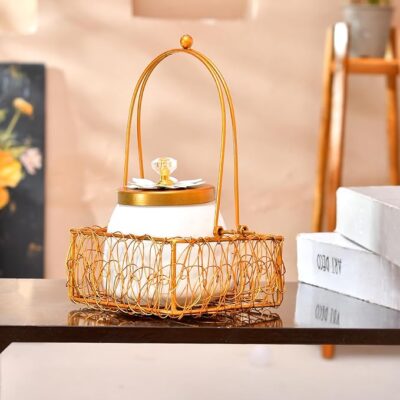 CraftVatika Gift Items Dry Fruit Container Jar with Basket, Home Decor Items, Wedding Gifts, Cookie Nuts Storage Jar with Lid, Elegant Dry Fruits Box for Storage