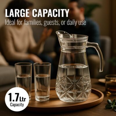 Be the first to review “Cristello 1700 ml Glass Water Jug with Lid | Elegant Transparent Pitcher for Dining Table | Detox Jug for Juice, Iced Tea, Milk & Infused Water”