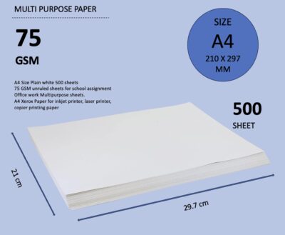 The Cubic A4 multipurpose copier paper is made with 75GSM high-quality white sheets that provide clear, sharp printing for both inkjet and laser printers. Each ream includes 500 sheets, making it suitable for home, office, and educational use. The standard A4 size (210 x 297 mm) fits all common printers, copiers, and multifunction devices. Its consistent thickness helps reduce paper jams and ensures smooth operation during bulk printing. The bright white finish enhances text clarity and document presentation for reports, assignments, and official paperwork. The paper also works well for light drawing and note-taking. Cubic multipurpose copier paper is a dependable choice for users seeking versatile, everyday printing sheets.