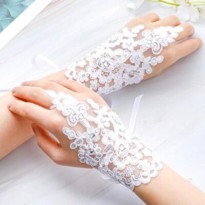 Crafted from soft, luxurious satin and accented with delicate lace detailing, these gloves offer a graceful, feminine appeal that complements both modern and traditional bridal looks.