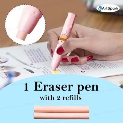 Make erasing fun with this cute bunny-themed pink pen eraser! Designed like a pen for better grip and control, it provides clean, precise erasing without damaging paper—great for schoolwork, art, and journaling. The retractable design keeps the eraser protected, while the included 2 extra refills ensure long-lasting use. Made from child-safe, non-toxic materials, this durable eraser pen is an ideal gift for kids, return gift packs, or daily school stationery.