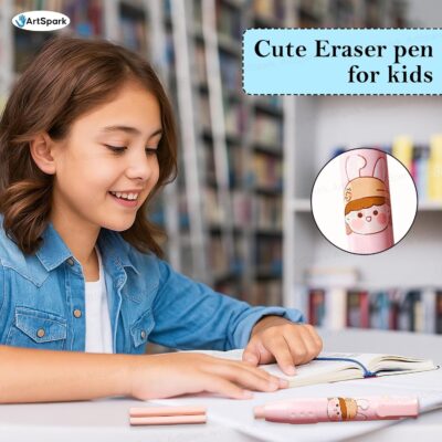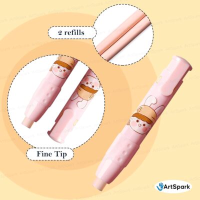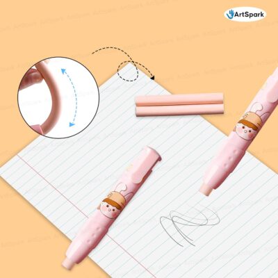 Adorable bunny-themed retractable pen eraser with 2 refills. Offers smooth, precise erasing and a safe, kid-friendly design—perfect for school, art, and gifting.