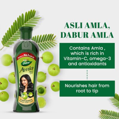 Dabur Amla Hair Oil nourishes hair with the richness of amla to promote stronger, longer, and thicker strands. Its traditional formulation helps condition the scalp and enhance hair vitality with regular use.