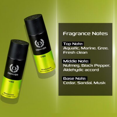 Denver Black.Code Vibe Deo Body Spray features a dynamic and refreshing fragrance that elevates your style.