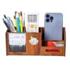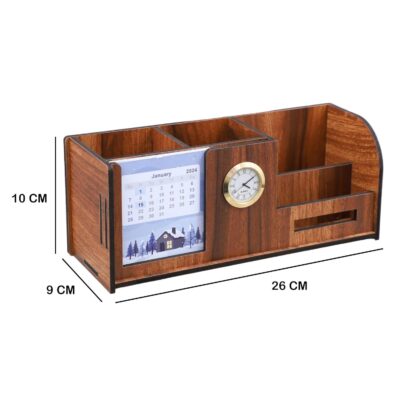 Deskart Desk Organizer With Calender, Clock, Business Visiting Card And Mobile Holder|Multipurpose Wooden Pen And Pencil Holder Stand For Office&Study Table, Desk Supplies Organisers,Brown