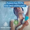 Its cooling formula invigorates the skin, leaving a refreshing sensation after every bath.