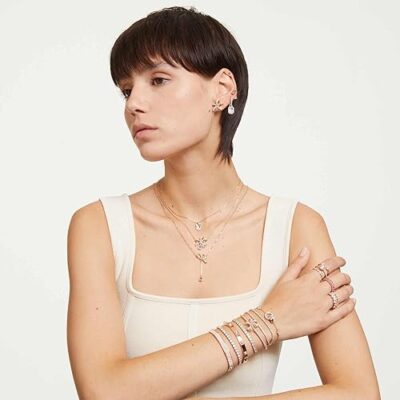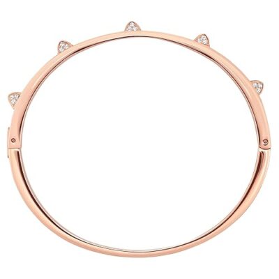 Chic white Dextera bangle with a rose gold-tone finish, blending modern design and elegance for a stylish addition to women’s fashion jewellery collections.