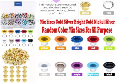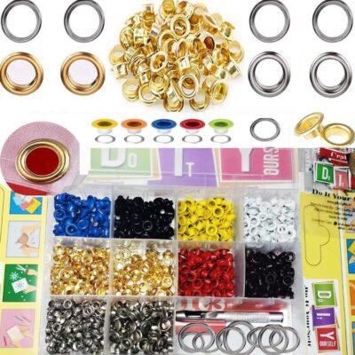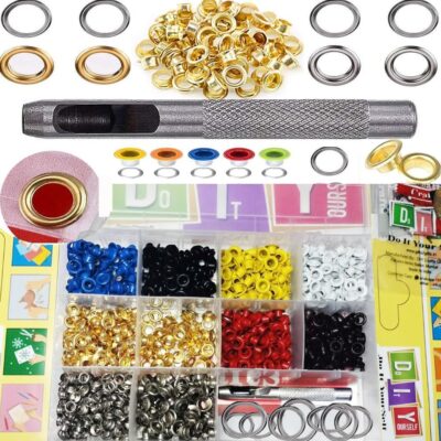 The DIY Craft 500-Piece Eyelets & Washer Grommet Kit is an all-in-one set designed for both hobbyists and professionals. It includes gold and silver metal grommets, a heavy-duty carbon steel hole punch tool, and a lightweight soft mallet featuring hard and rubber heads for precision work without surface damage.